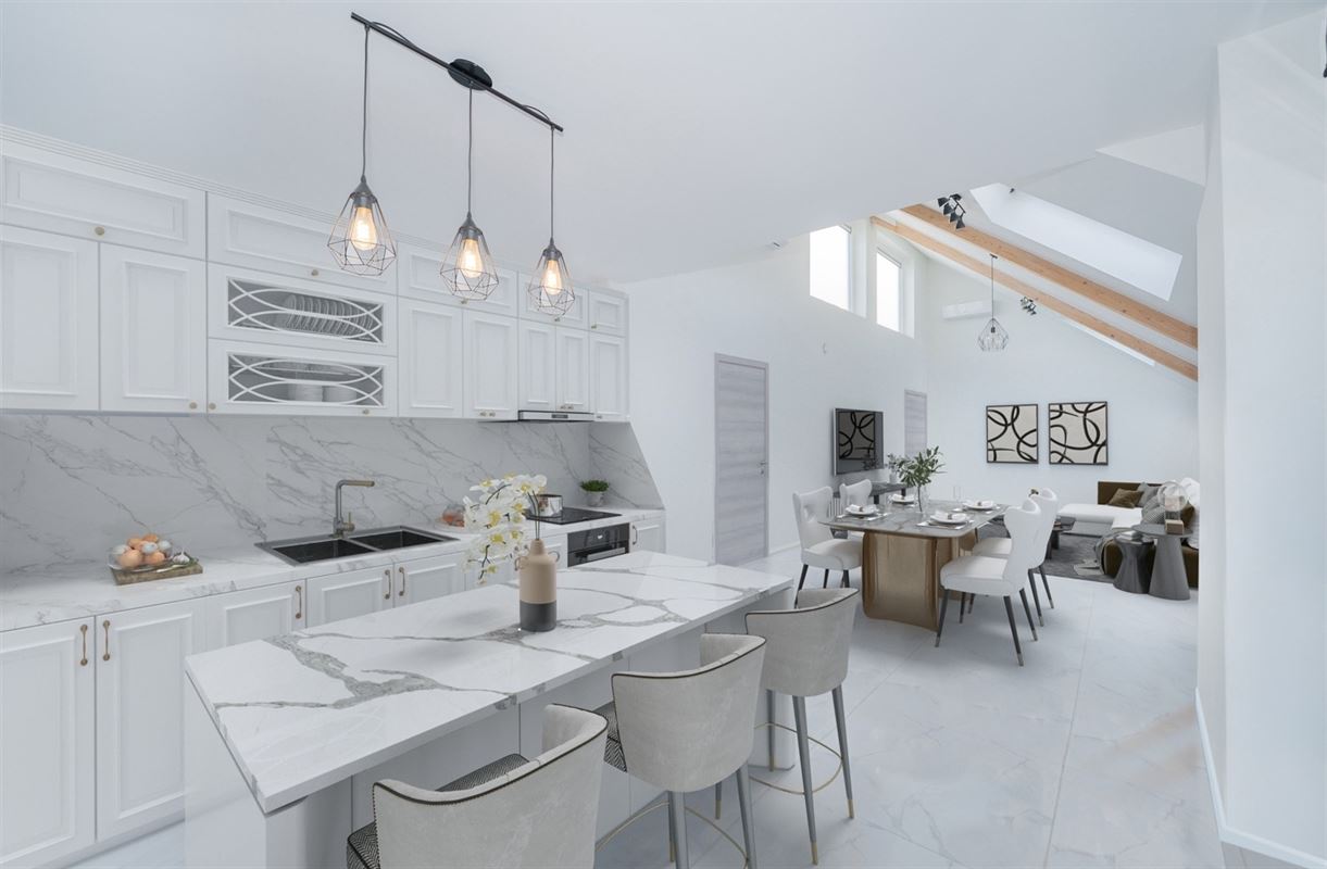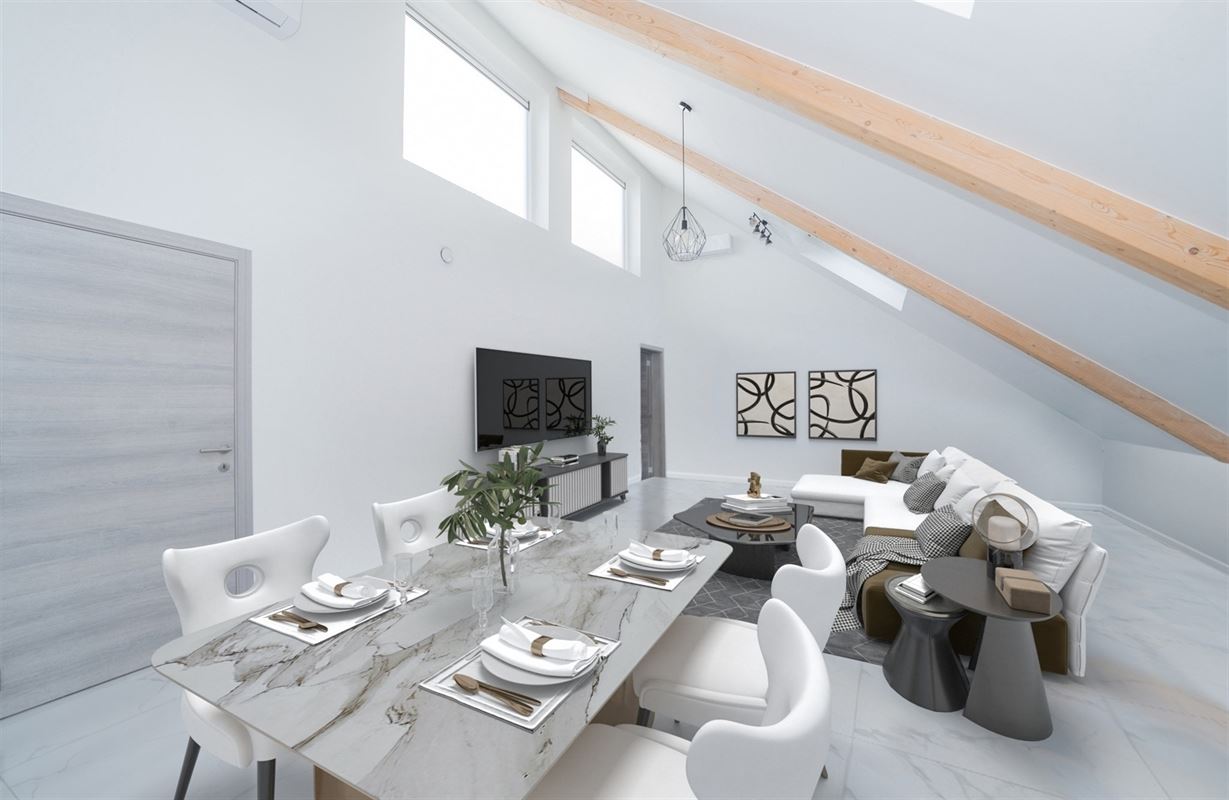 Découvrez ce lumineux penthouse de 141 m² situé en plein cœur de Rocourt. À proximité directe de toutes les commodités, il se compose comme suit : hall d'entrée, séjour/salle à manger suivi d'un espace cuisine ouverte (cuisine non comprise), 2 terrasses, 2 chambres, 2 salles de bains avec douche, et un WC individuel. Possibilité d'acquérir un emplacement de parking souterrain et une cave en option. Particularités : chauffage par le sol (chaudière à condensation, gaz), climatisation, PEB B, résidence avec ascenseur. Aménagement virtuel non contractuel.