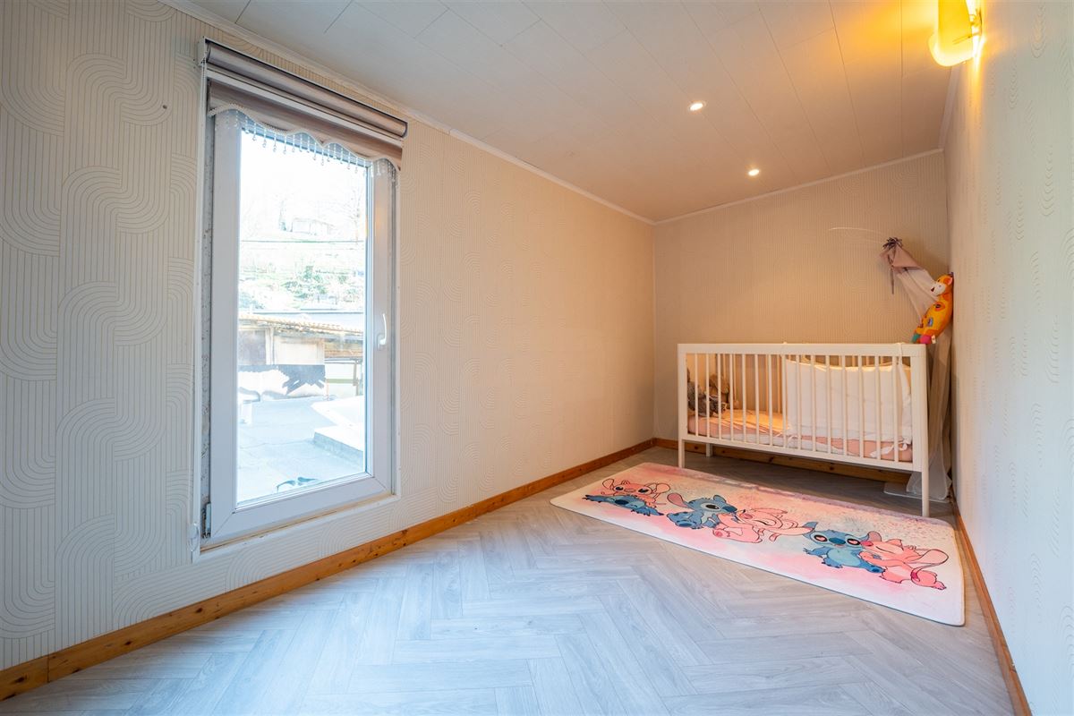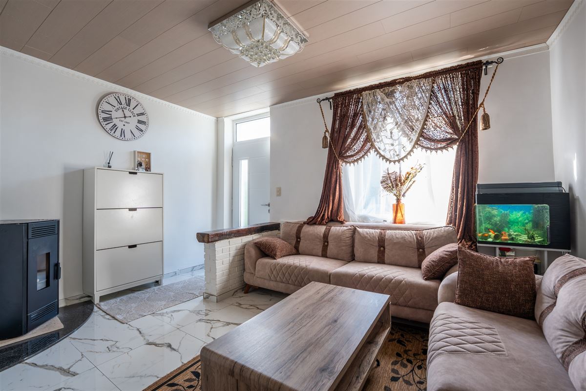 Maison rénovée idéalement située à proximité directe de toutes les commodités, composée comme suit : Sous-sol : cave. Rez-de-chaussée : séjour avec poêle à pellets, salle à manger, cuisine entièrement équipée, salle de bains avec WC et espace buanderie. 1er étage : 2 chambres et un bureau. 2e étage : grenier de stockage. Le bien dispose également d’une cour à l’avant ainsi que d'emplacements de parking situés directement devant la maison. Particularités : PEB D, libre à l’acte, électricité conforme jusqu’en 2036, châssis PVC double vitrage, RC net : 390€.