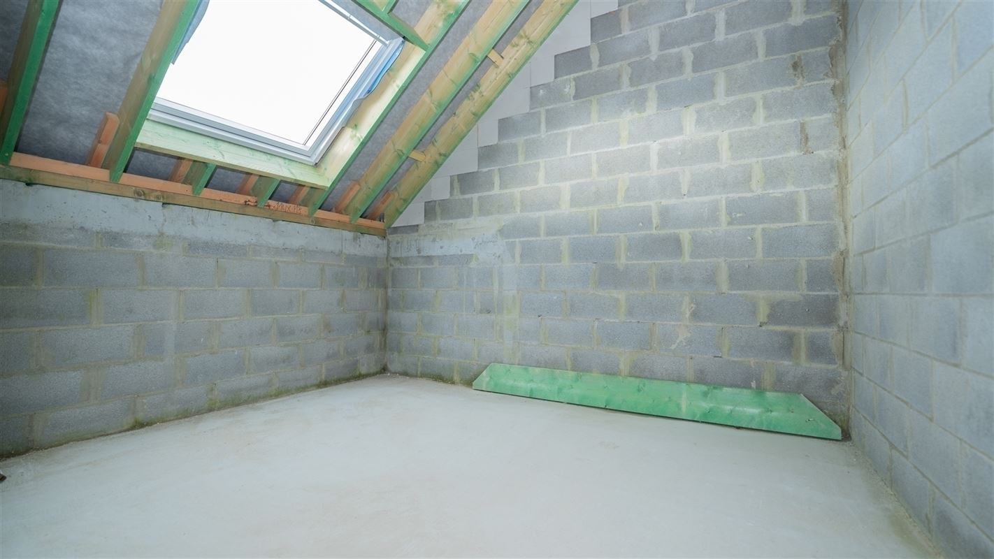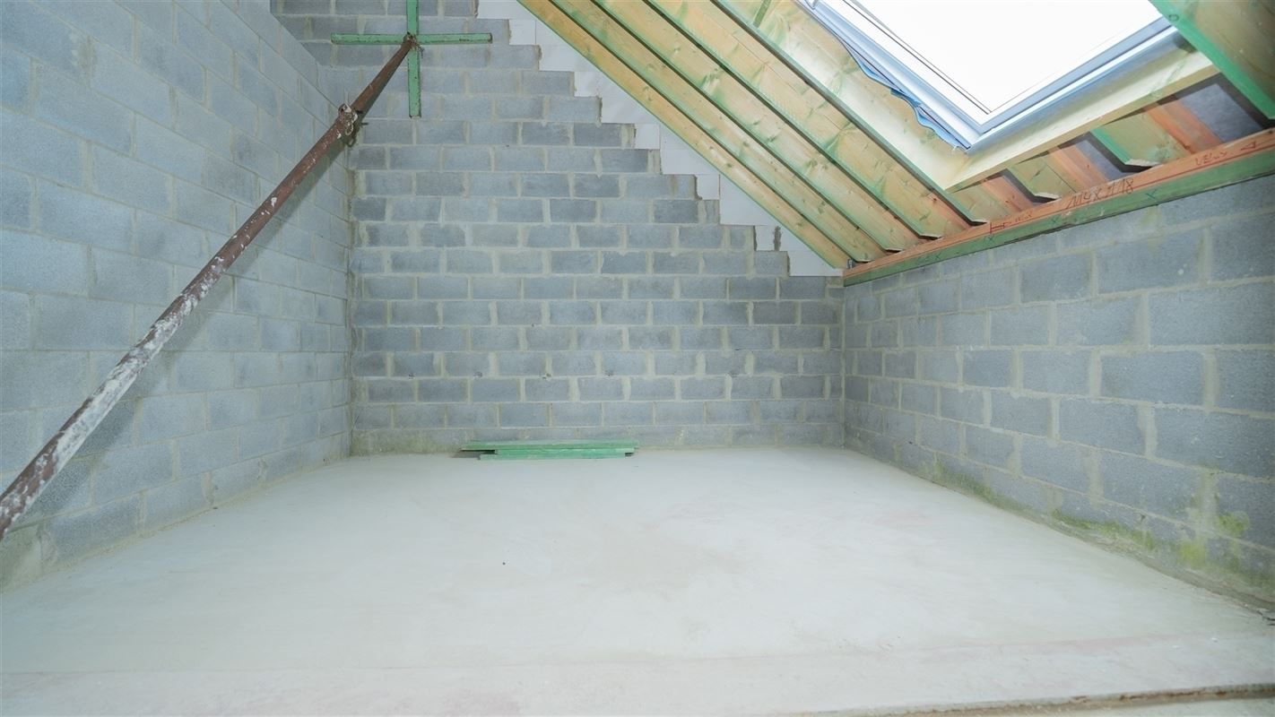 Gros oeuvre couvert vendu dans l’état actuel sans châssis. Composition: rdc: hall d’entrée, garage 2 voitures, cave, cour. 1er: hall, séjour, salle à manger, cuisine ouverte, bureau et wc indépendant. 2ème étage: hall de nuit, 2 chambres dont une suite avec sdb, dressing, 2ème sdb avec wc. Citerne à eau de pluie. Régime TVA 21%